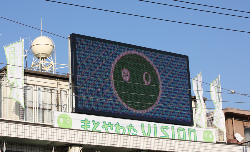 横6m×縦3mの大型LED看板 『もとやわたVISION』の下に設置されている横断幕を製作させていただきました。